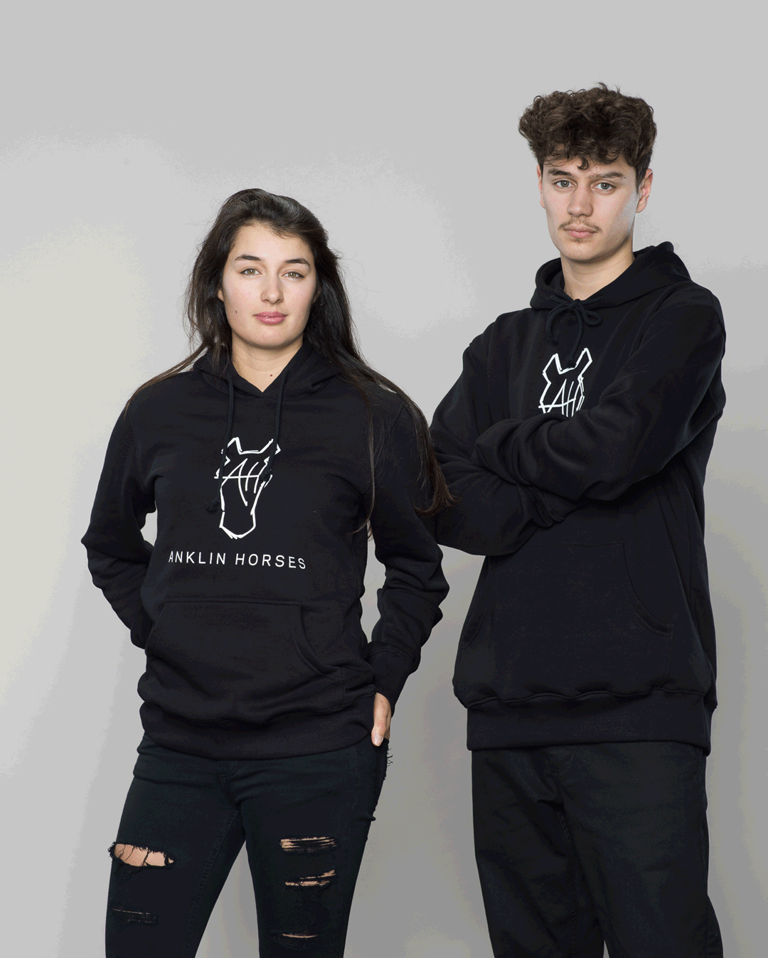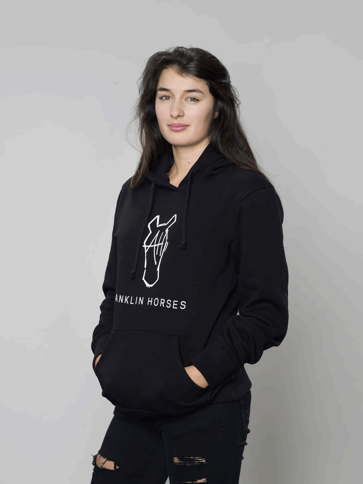 Sweat noir femme. Se porte à la ville comme à cheval.
